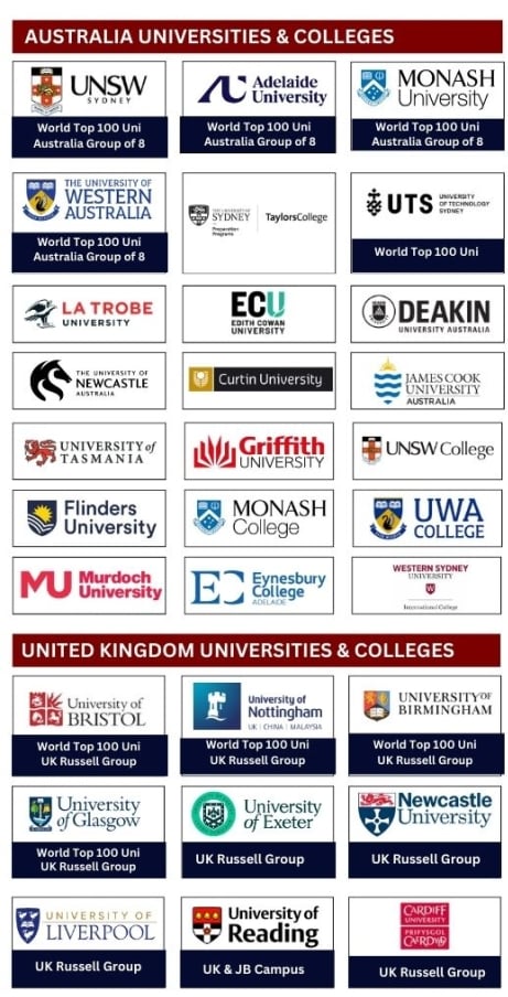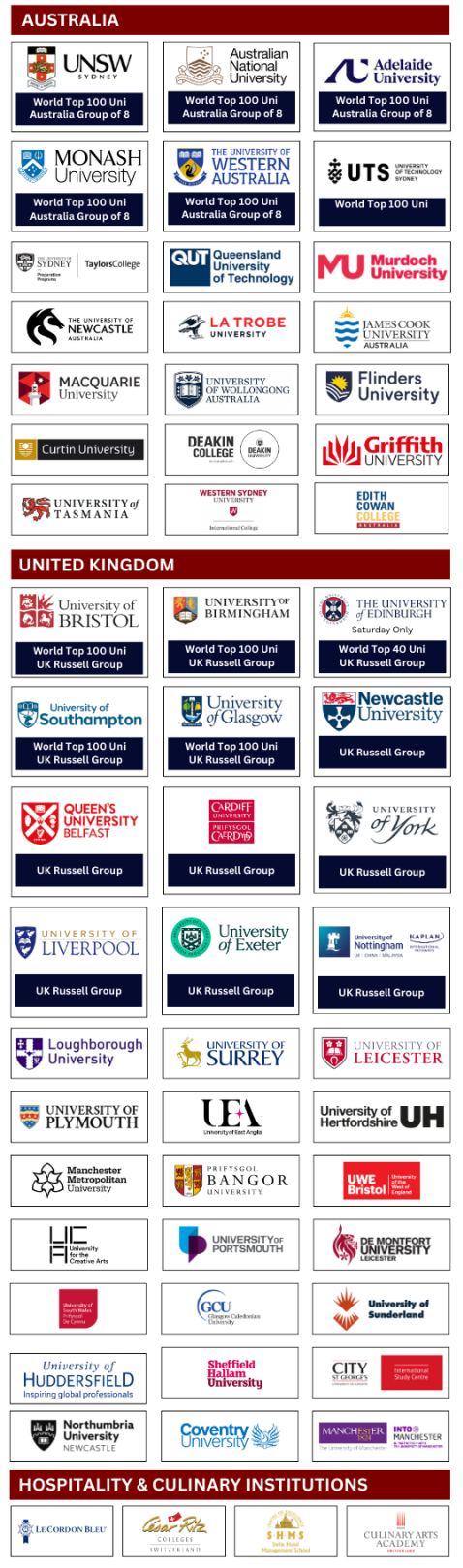 We have successfully sent Hundreds of Students to Highly Ranked Universities in the UK & Australia such as: