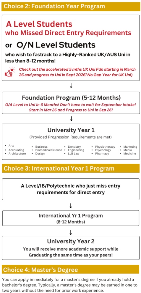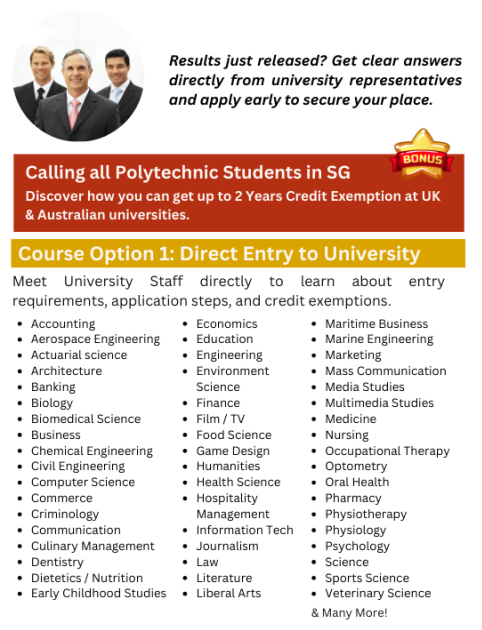 No, it’s not limited to just Polytechnic, O/A/N Level or IB students. As long as you’re keen to study overseas, we can assist you. Our services are open to anyone exploring international education opportunities, regardless of your current academic background.