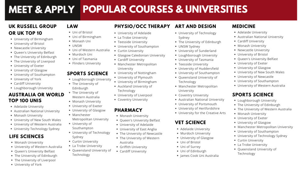 Some people might consider applying directly to universities themselves which is feasible but it can be difficult to receive timely responses on yr queries regarding your application due to time zone differences and the high volume of applications that universities receive each week. Additionally, the visa processes and arranging accommodation can also be confusing